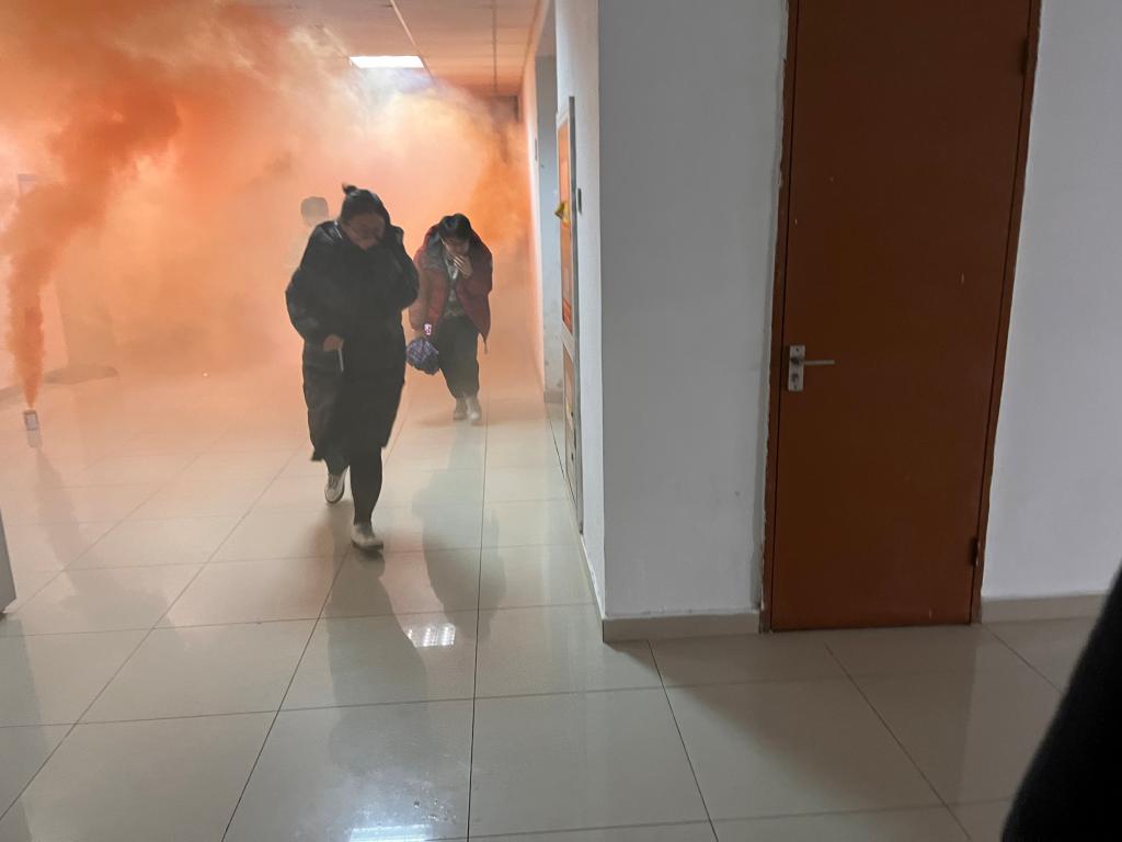 培训会后校保卫处卢致远老师组织开展了消防应急疏散和灭火演练,让研二的同学们每人一个灭火器,尝试了运用干粉灭火器对汽油桶灭火的具体操作,提升了学生们的应急处置经验。