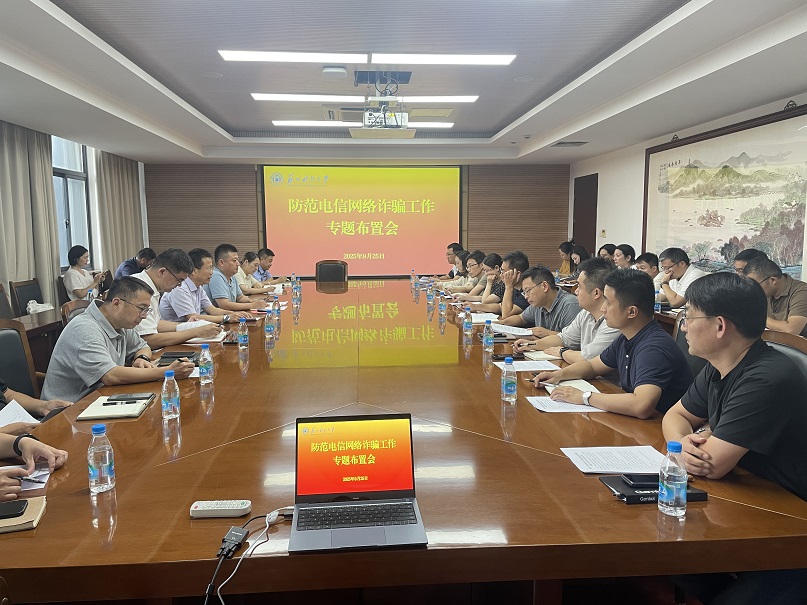 9月25日,学校召开防范电信网络诈骗工作专题布置会,党委常委、副校长何湘江出席会议,相关职能部门负责人、各学院学工副书记及属地公安派驻高校警务室民警参加会议。